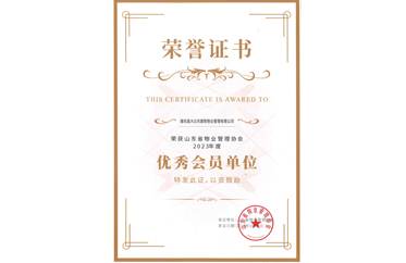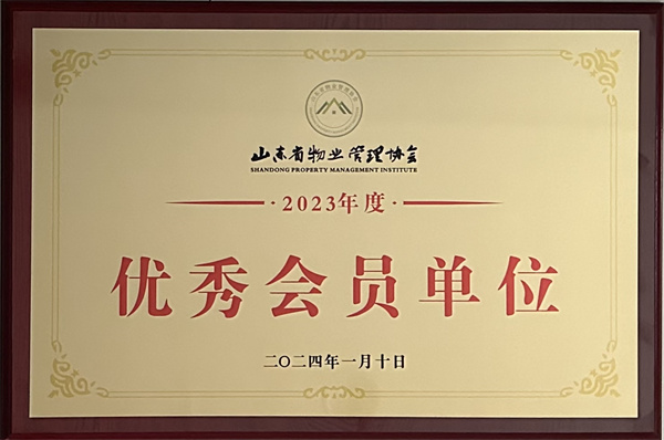 2023年度山東省物業(yè)管理協(xié)會優(yōu)秀會員單位證書
