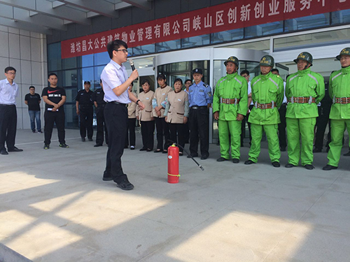消防演練按照預(yù)定的方案,有序、緊張地進(jìn)行。整體疏散到位后,各部門人員在峽山區(qū)創(chuàng)新創(chuàng)業(yè)服務(wù)中心北門口處集合,進(jìn)行了人員的清點(diǎn)統(tǒng)計(jì)。隨后,指揮員指導(dǎo)消防員演練用干粉滅火器進(jìn)行現(xiàn)場(chǎng)滅火。