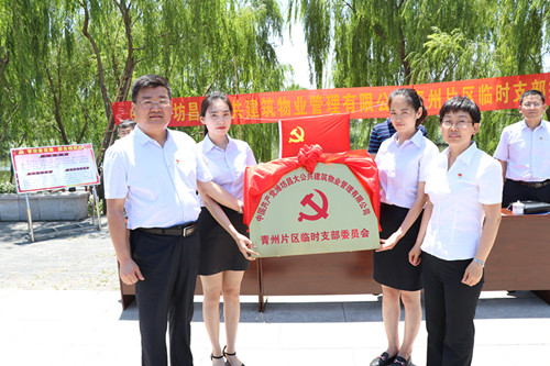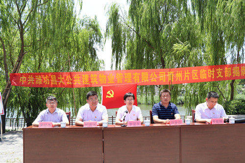 成立青州片區(qū)臨時黨支部是青州市陽河管理局黨支部認(rèn)真貫徹落實(shí)十九大精神,加強(qiáng)黨的基層組織建設(shè)的重大舉措,也是昌大公管公司踐行共治共管標(biāo)準(zhǔn)化、建立黨建統(tǒng)領(lǐng)制度的具體體現(xiàn)。隸屬青州陽河管理局黨支部與濰坊昌大公共物業(yè)管理黨有限公司黨總支直接領(lǐng)導(dǎo)。分設(shè)南、北陽河兩個黨小組,由總支部委員、片區(qū)主任王孝斌兼任臨時支部書記,邢友彪、劉陽陽、吳正彬任委員,劉陽陽任南陽河黨小組組長,邢友彪任北陽河黨小組組長。